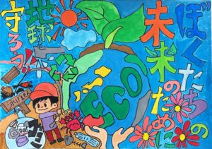 ポスターの目的は伝達です。ポスターを見た人が、描いた子どもたちの伝えたい思いを受け取り少しでも日々の行動につなげていただくよう願っています。取り組んでくれた皆さんありがとうございました。